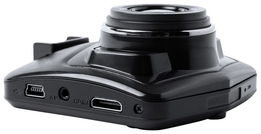 Wielojęzyczna kamerka samochodowa z rozdzielczością 720p, ekranem LCD 2,4 ", detekcją ruchu i gniazdem na kartę micro SD. W zestawie ładowarka samochodową USB i uchwyt na szybę z przyssawką.
